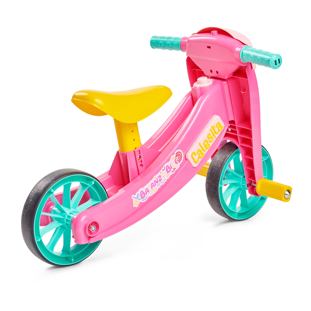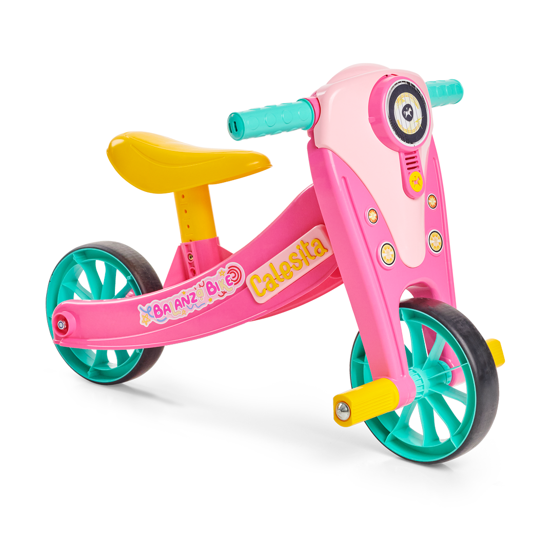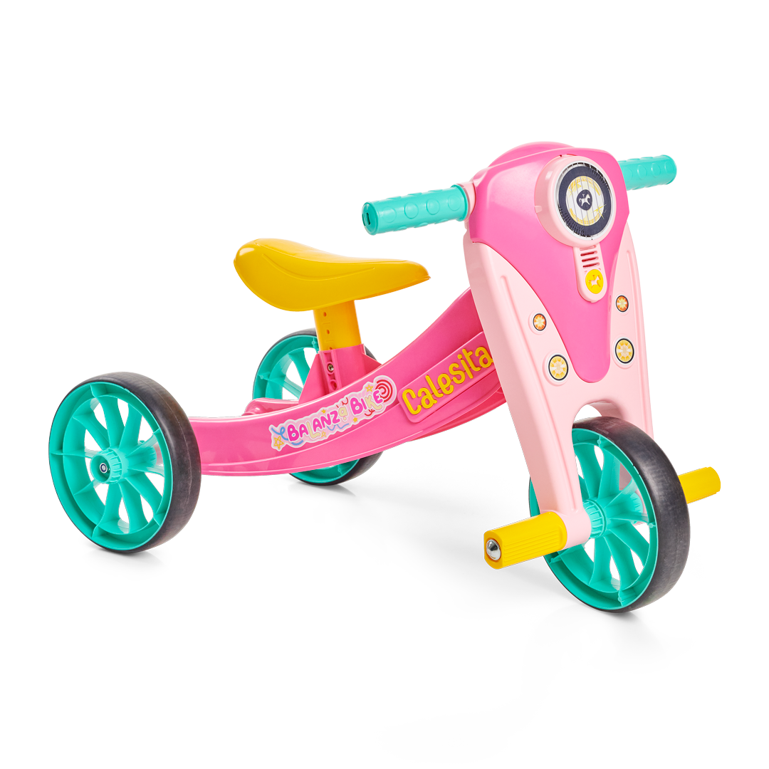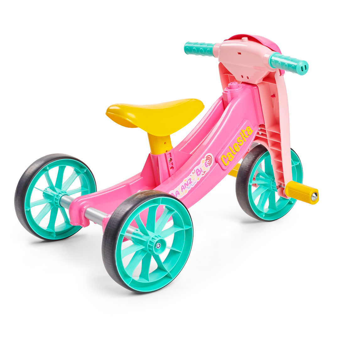 No início, a BalanzaBike funciona como triciclo, com três rodas, perfeita para os pequenos que estão dando as primeiras voltas e aprendendo, aos poucos, a dominar o equilíbrio.Com o tempo, a coragem cresce. E a