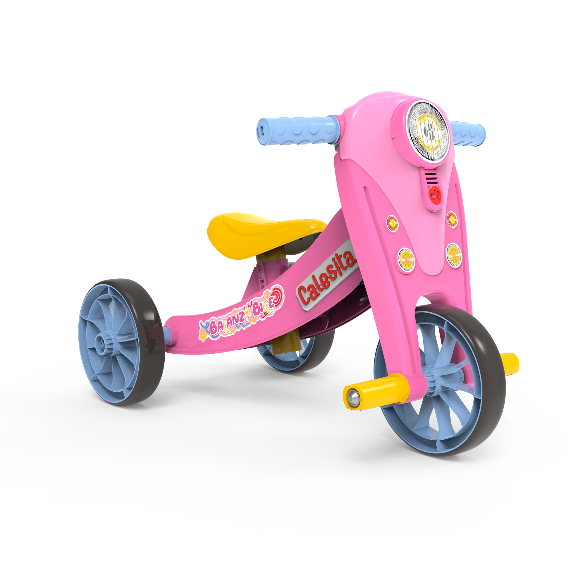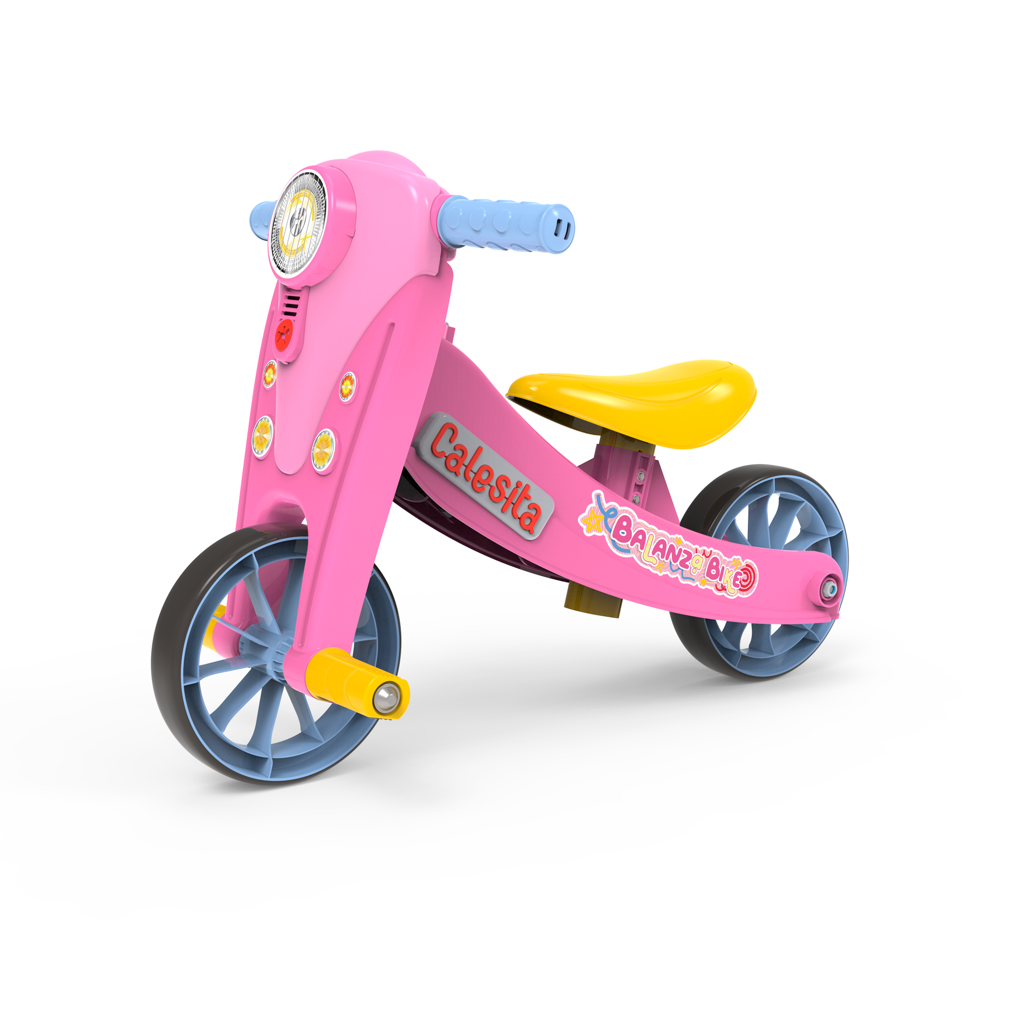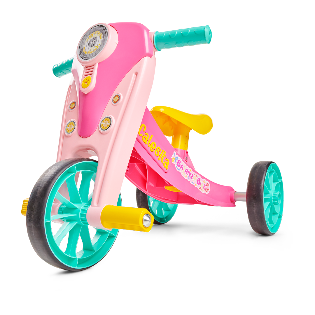 No início, a BalanzaBike funciona como triciclo, com três rodas, perfeita para os pequenos que estão dando as primeiras voltas e aprendendo, aos poucos, a dominar o equilíbrio.Com o tempo, a coragem cresce. E a