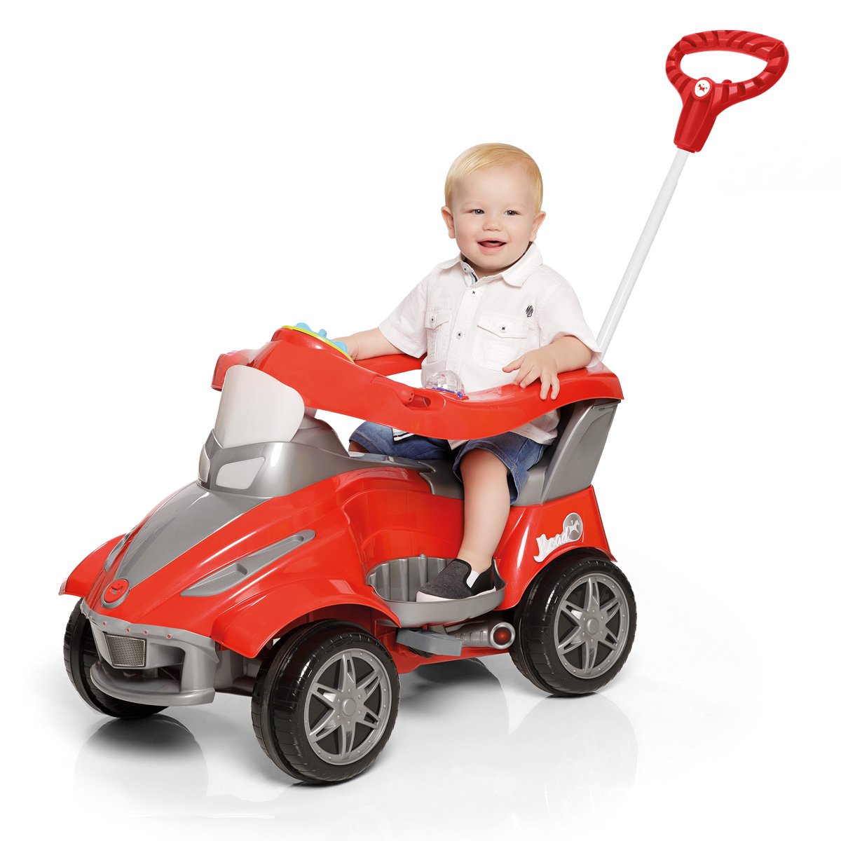 Com aro protetor interativo, cores peroladas e diferenciadas, apoio de pés e empurrador, a segurança e a diversão estão garantidas.
