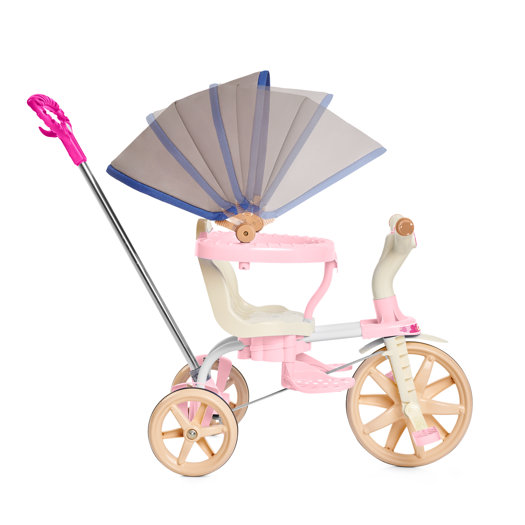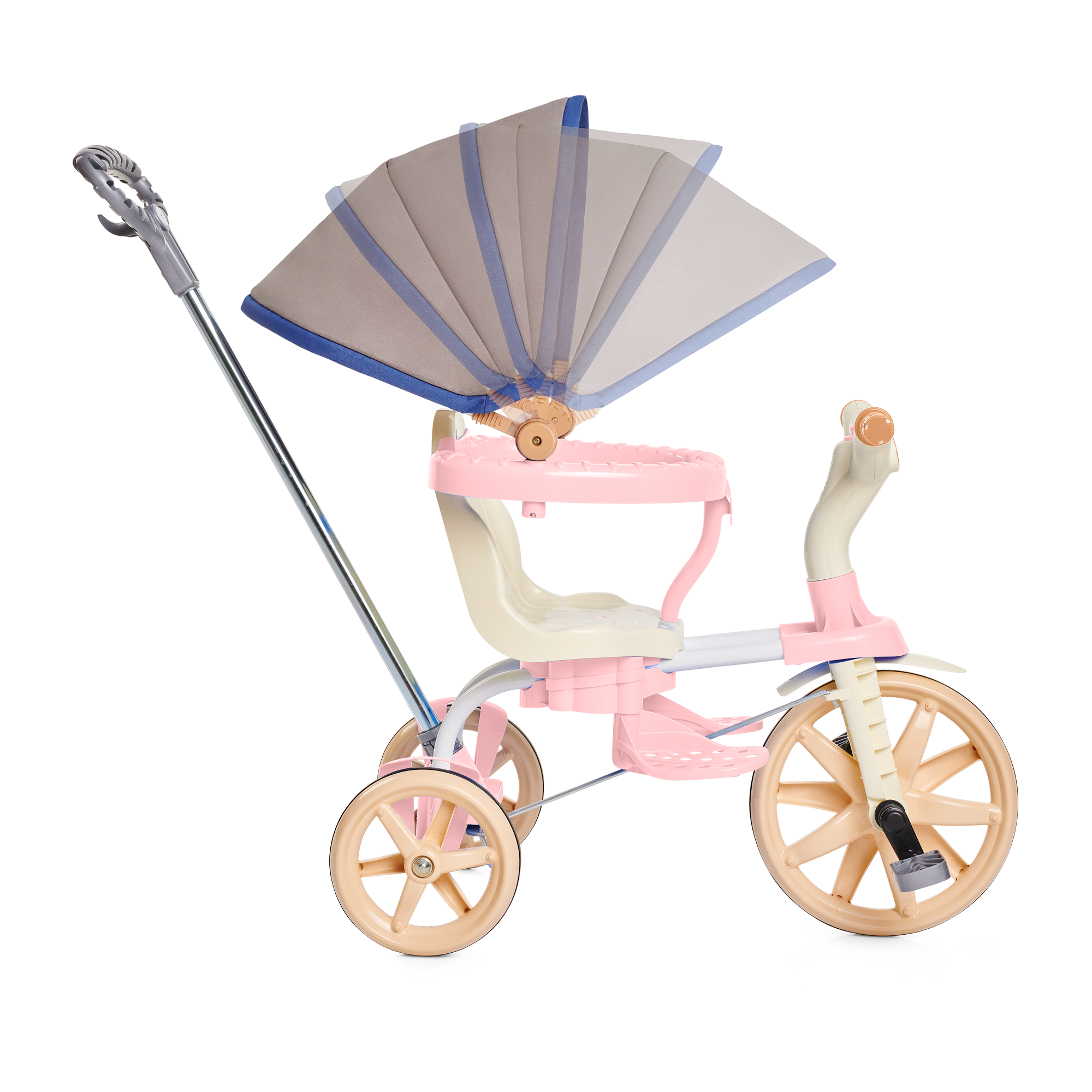E para os dias de sol, o toldo acoplável ao aro protetor entra em cena, protegendo os pequenos e garantindo um passeio mais tranquilo.
