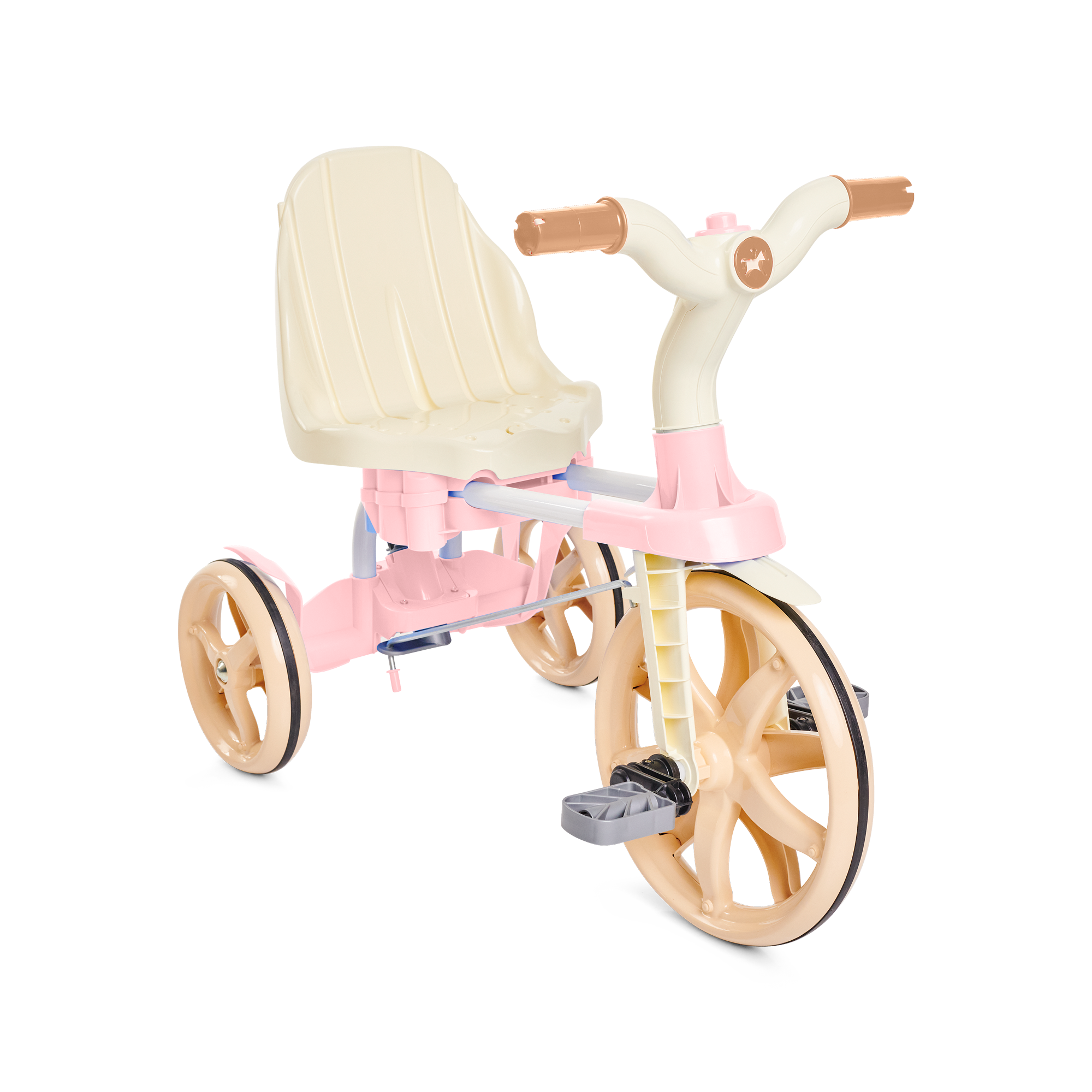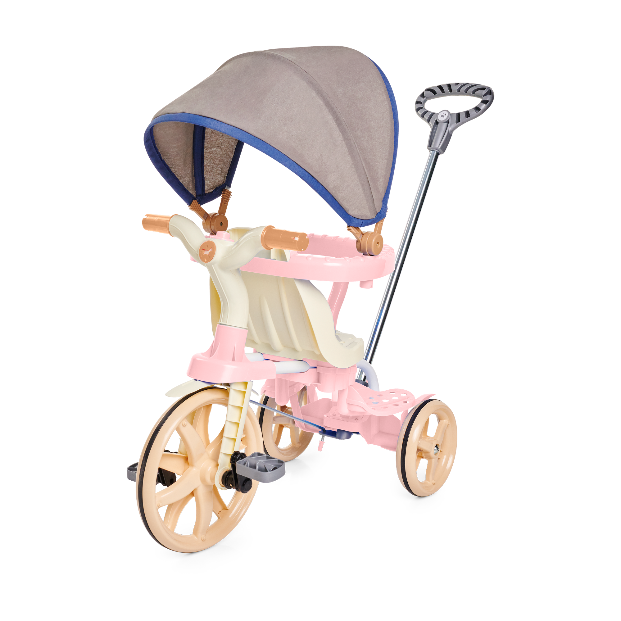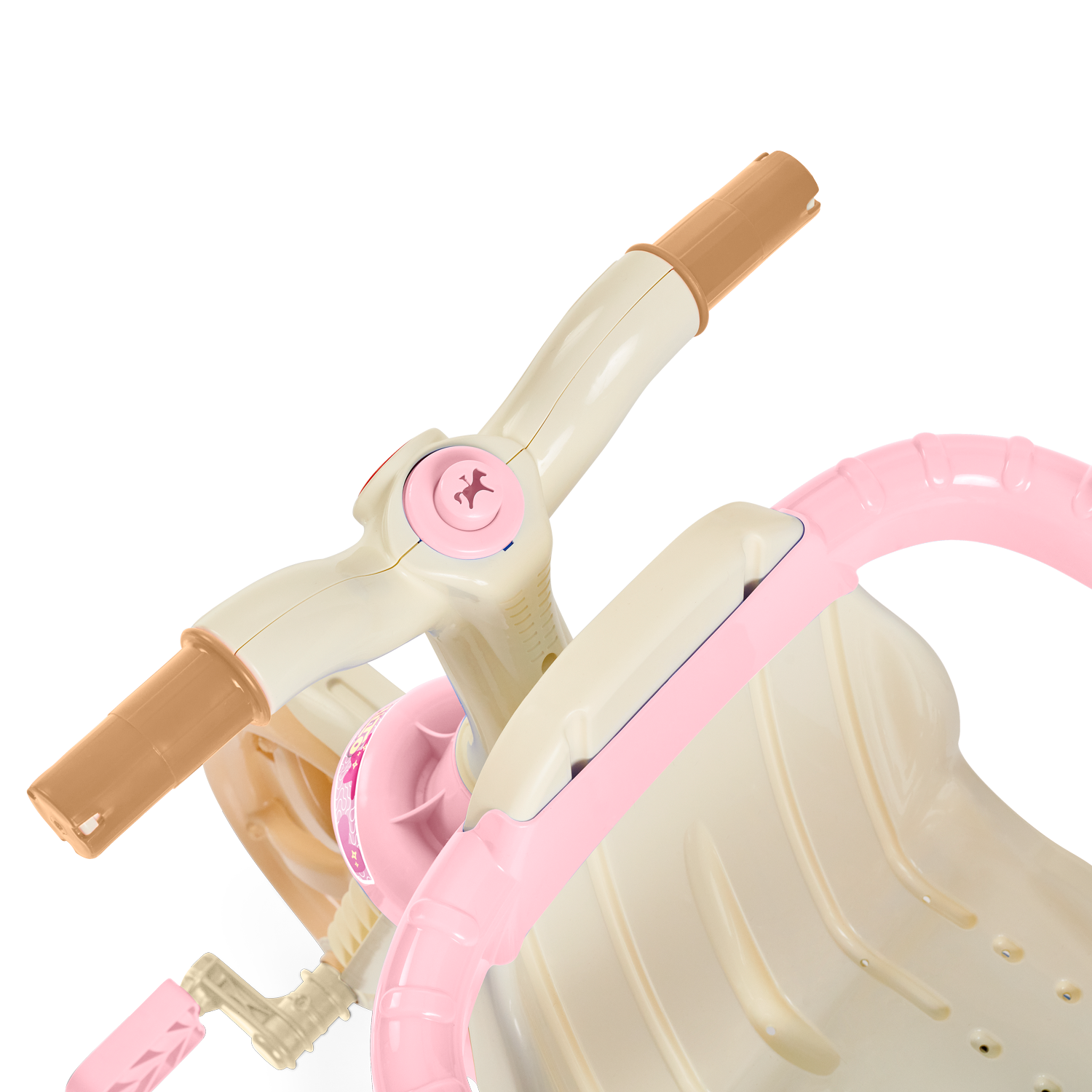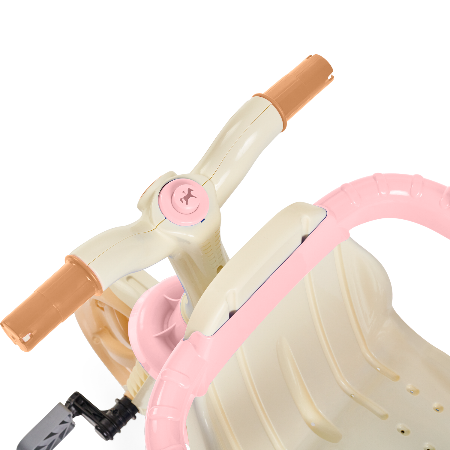 E quando o seu pequeno estiver mais crescidinho, lá pelos 24 meses, remova a haste, aro protetor e os apoios de pés para desfrutar do modo pedalar. Também é possível ajustar o banco para frente ou para trás, perfeito para a acomodar melhor as perninhas, deixando a pedalada mais confortável!