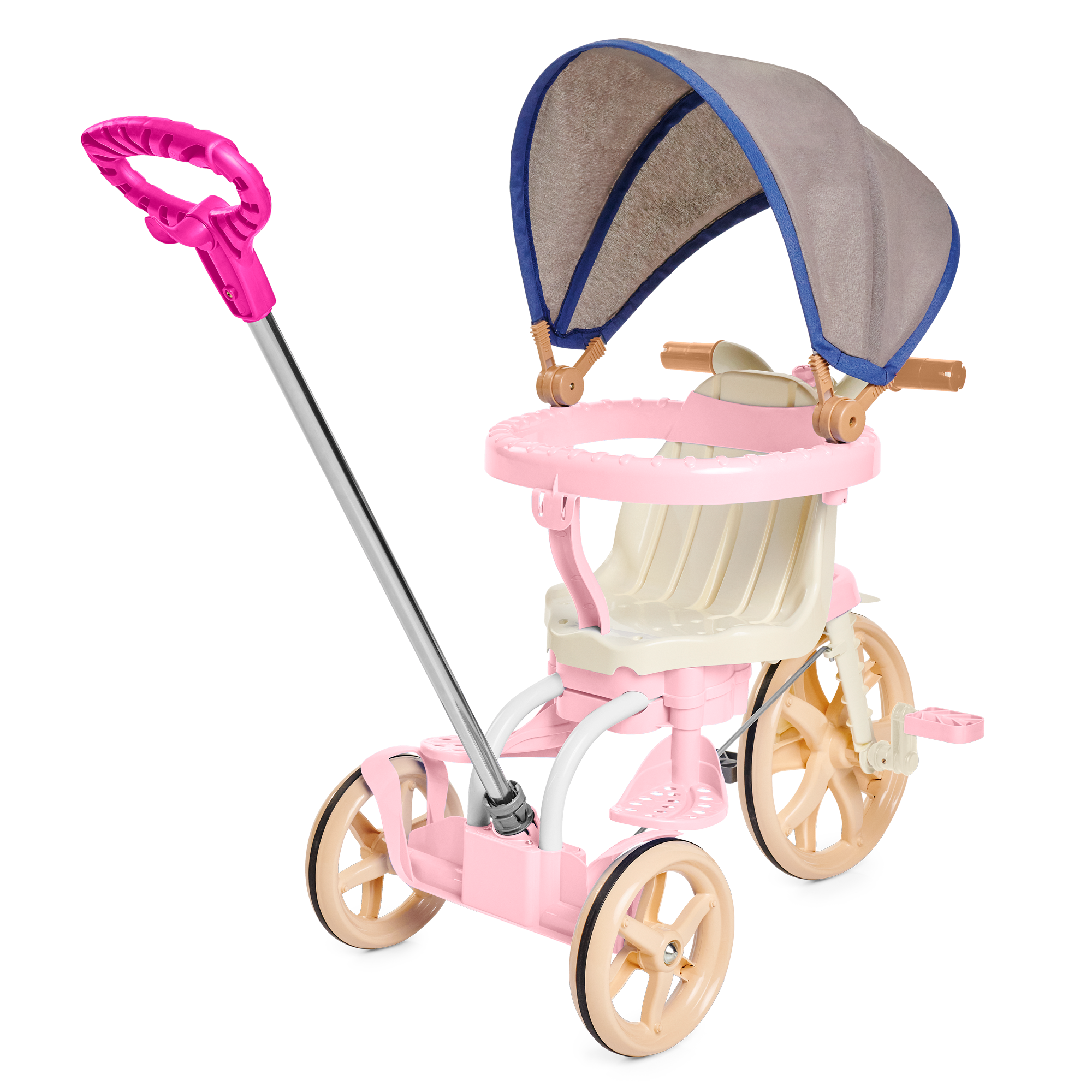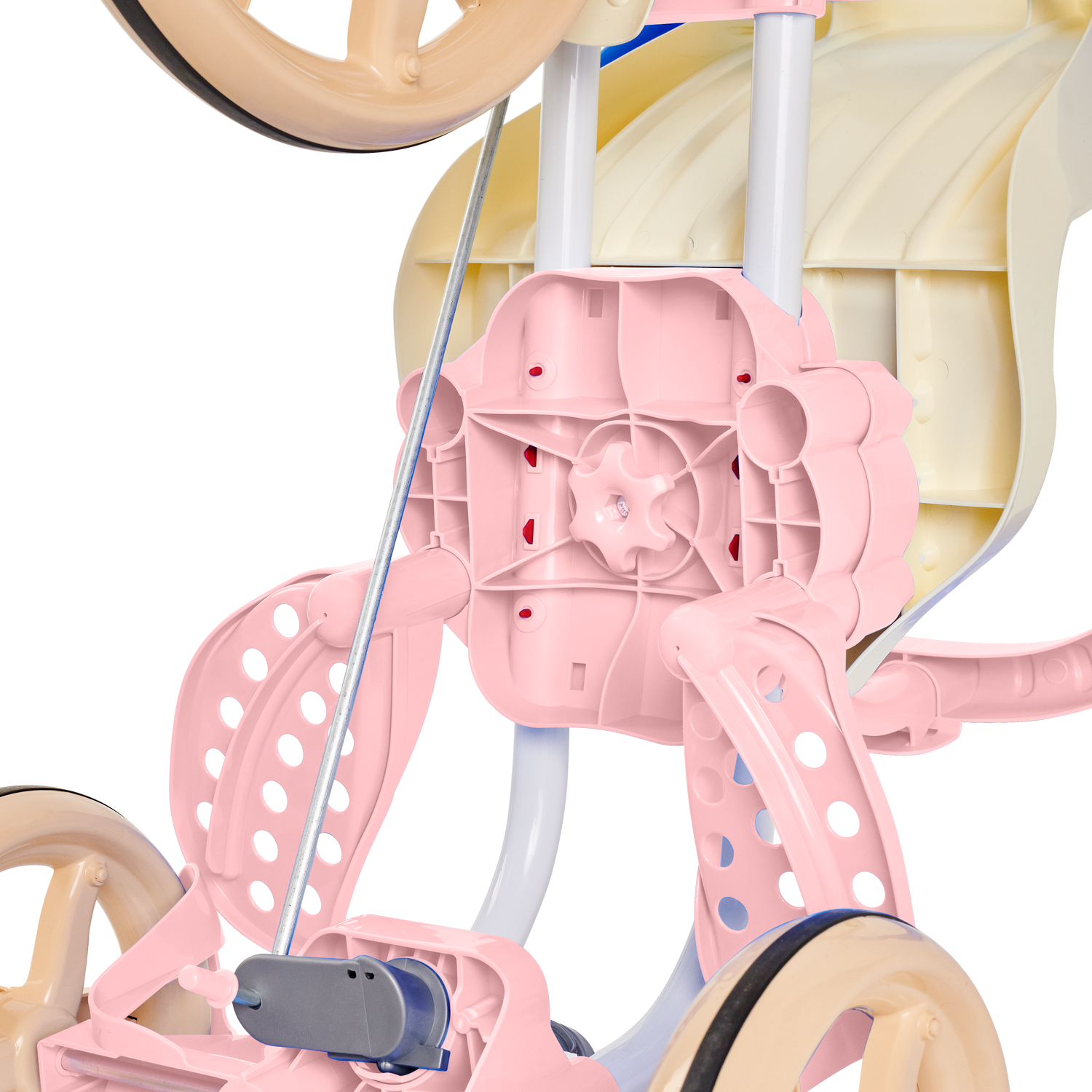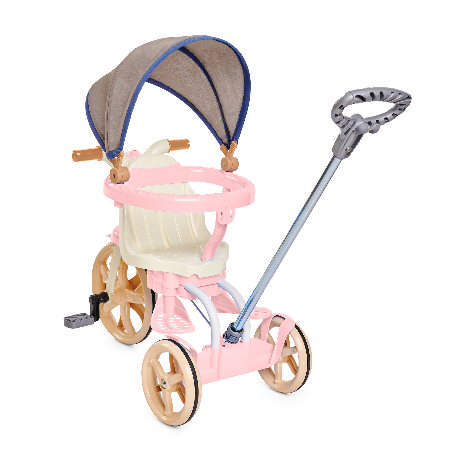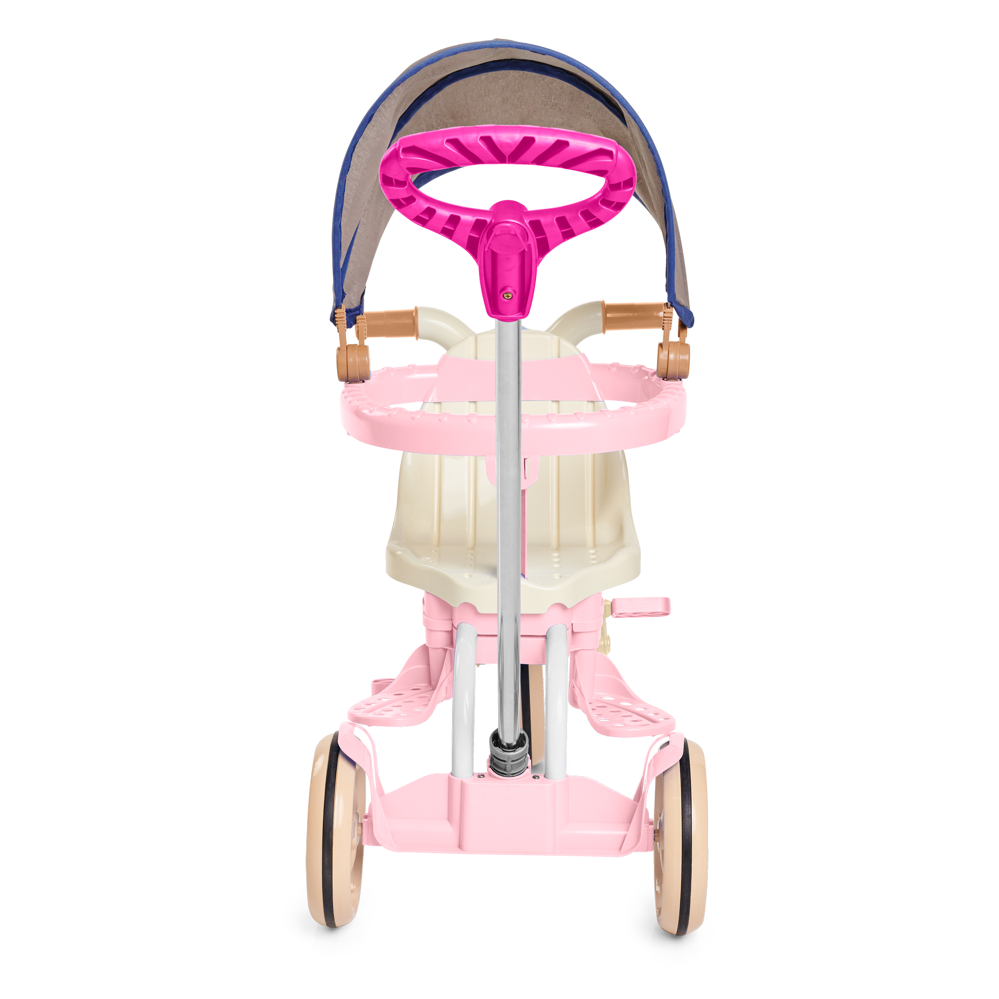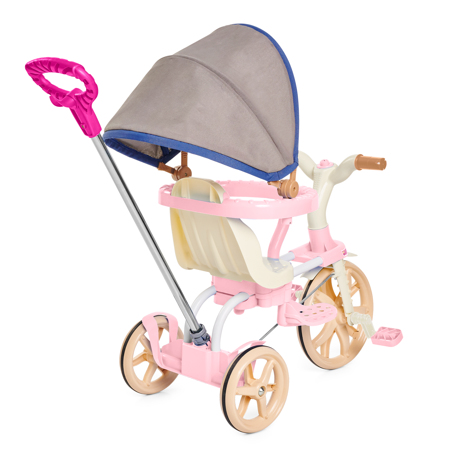 E quando o seu pequeno estiver mais crescidinho, lá pelos 24 meses, remova a haste, aro protetor e os apoios de pés para desfrutar do modo pedalar. Também é possível ajustar o banco para frente ou para trás, perfeito para a acomodar melhor as perninhas, deixando a pedalada mais confortável!