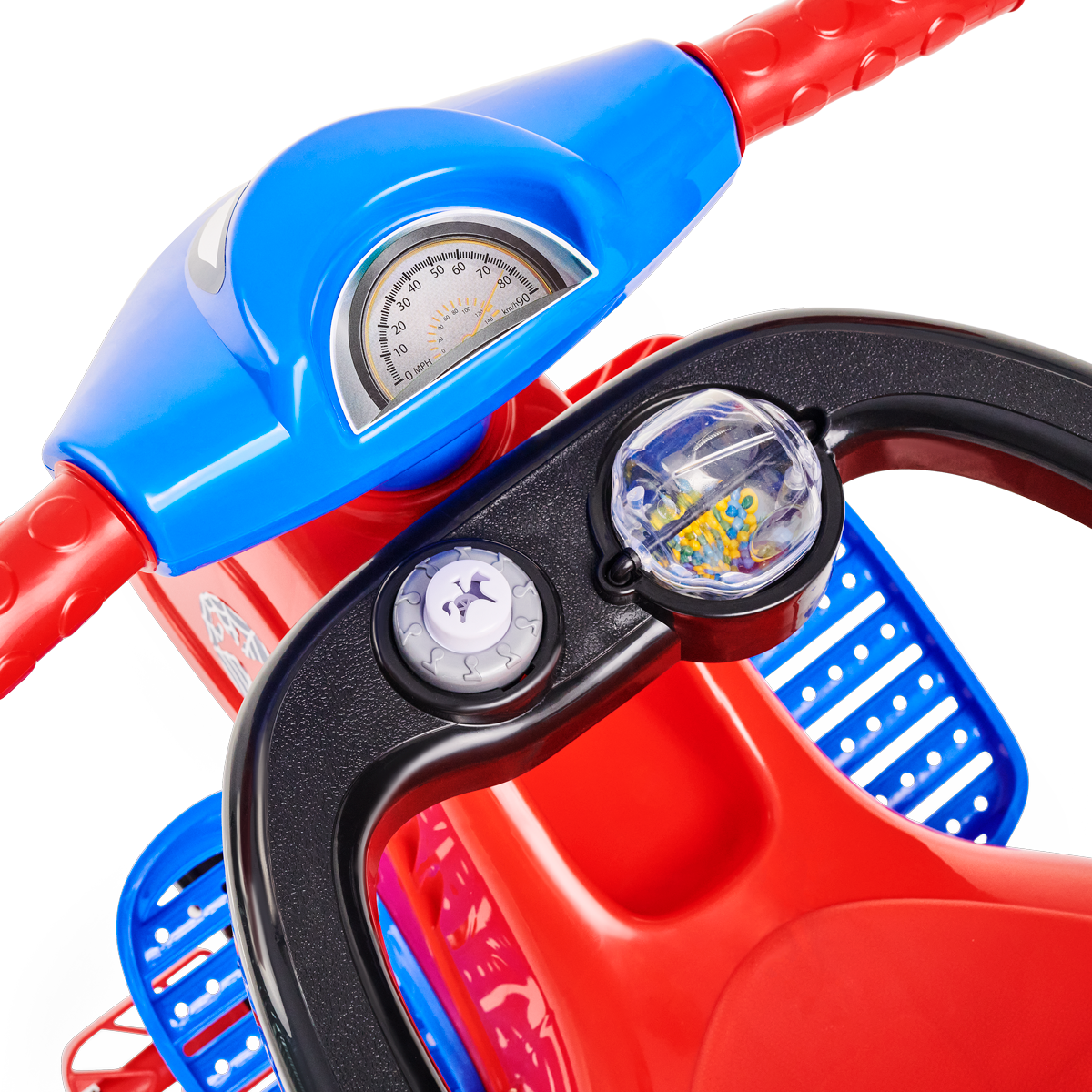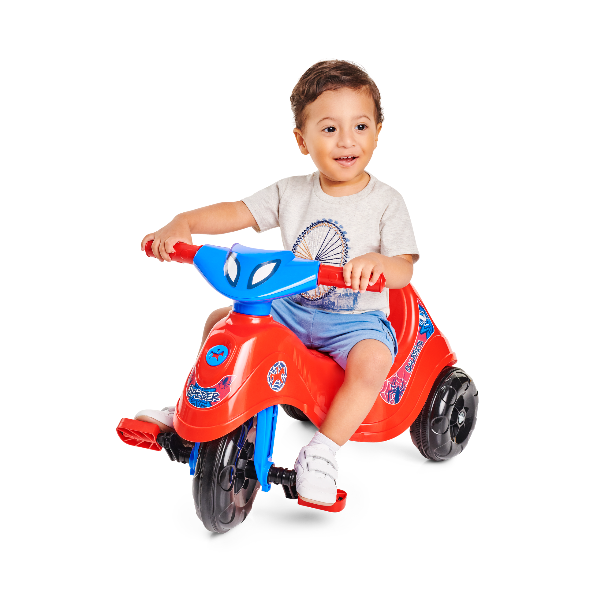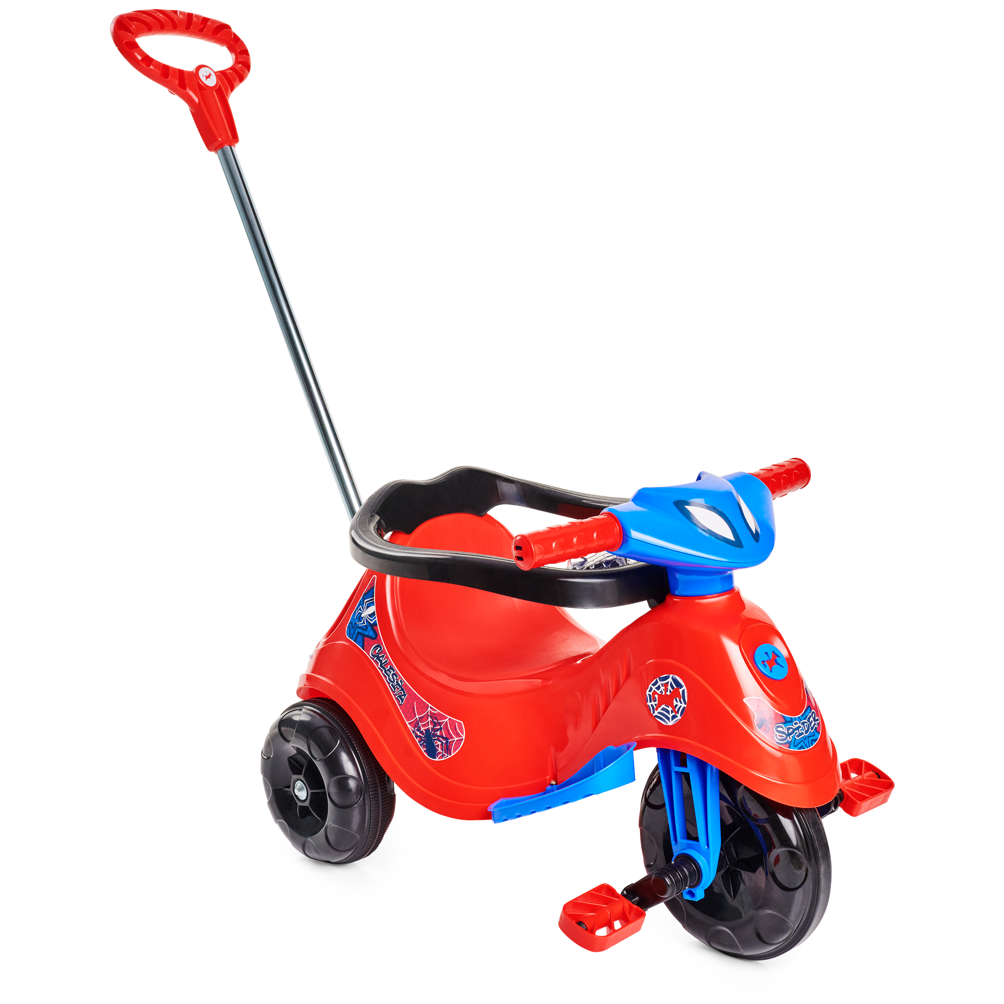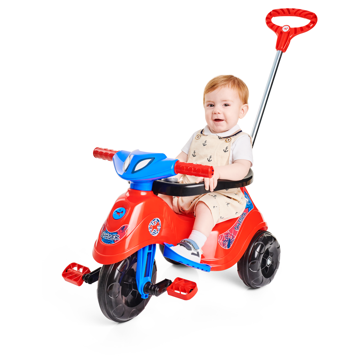 Ele tem direção e rodas guiadas pelo empurrador, vem com apoio de pé e aro protetor removível. E suporte para bolsa no empurrador. A Lelecita Spider acompanha o crescimento do seu herói! Nos primeiros passeios, pode ser usado na versão passeio com todos os acessórios, e quando o seu pequeno estiver pronto para novas aventuras, é só retirar o aro protetor, o apoio de pé e o empurrador. Elá também possui roda com borracha antiderrapante, e também um suporte para guardar a garrafinha ou mamadeira.
