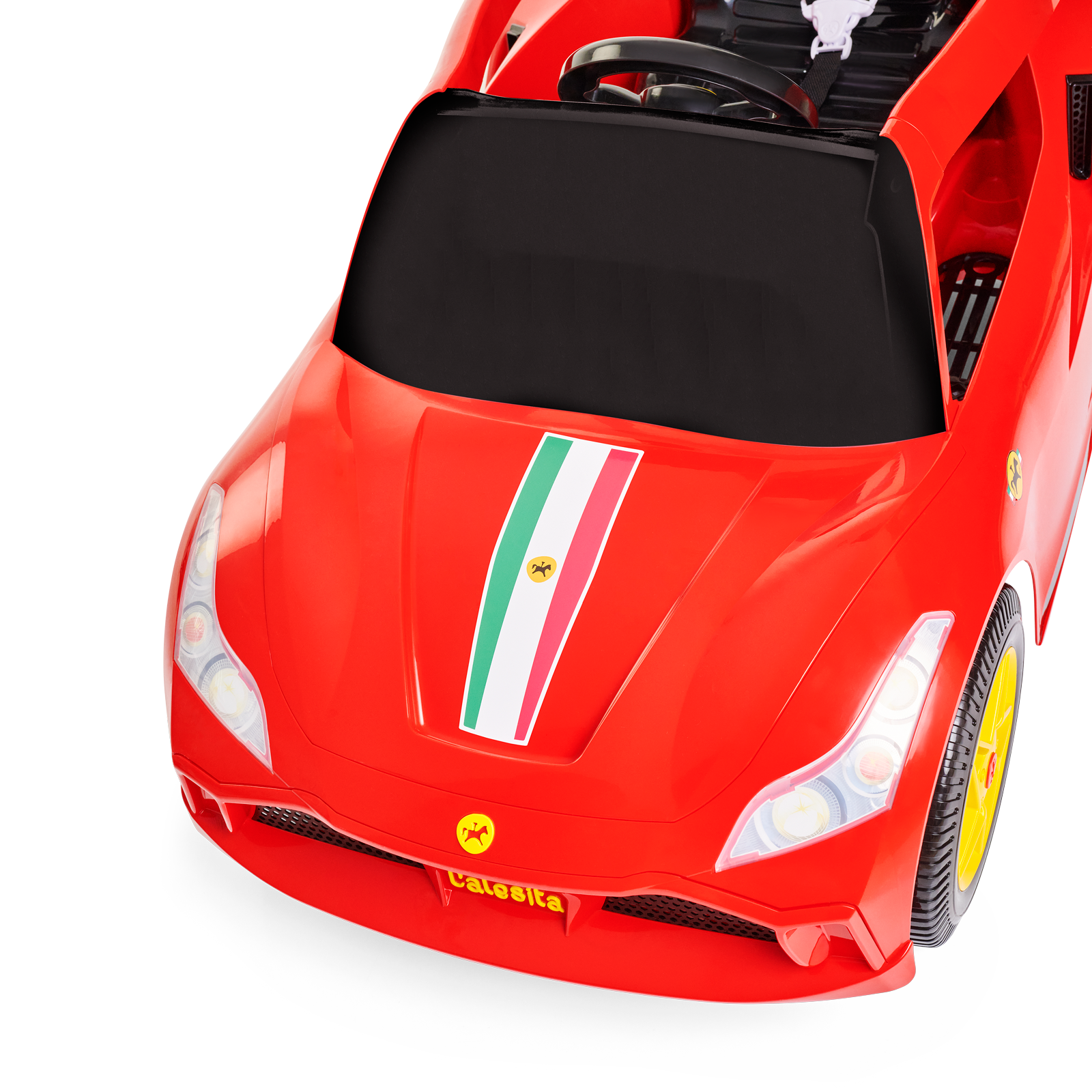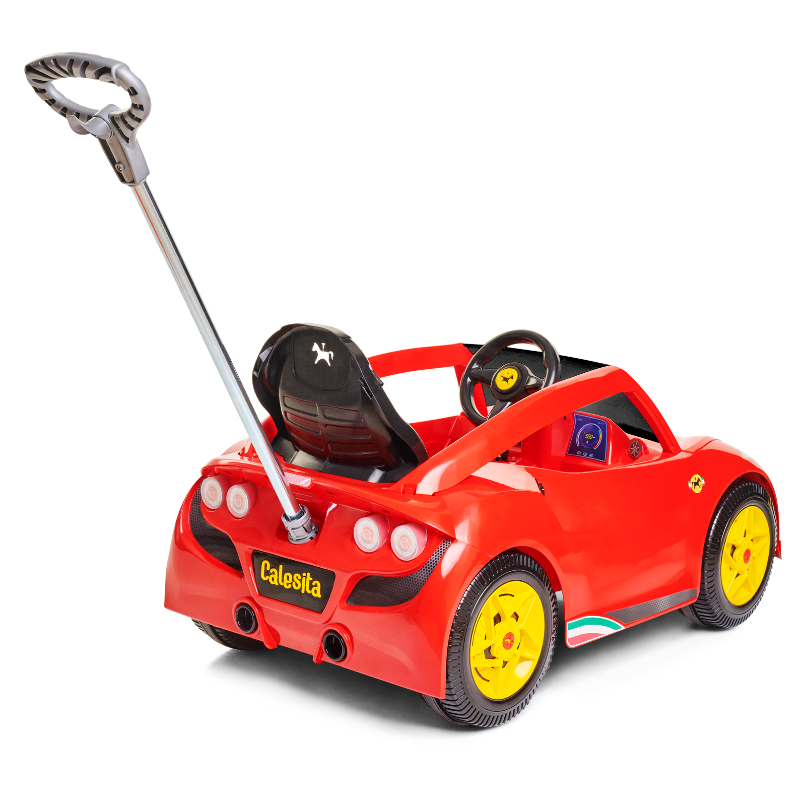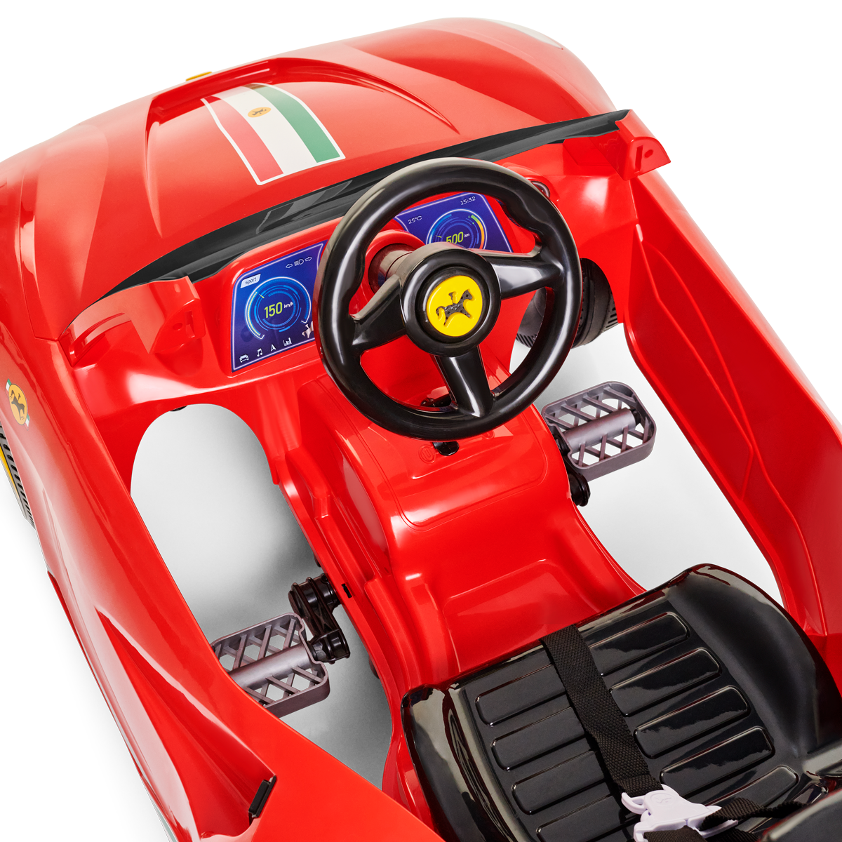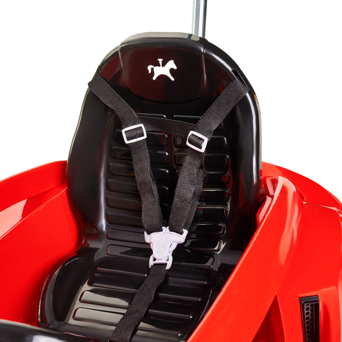 Os apoios de pés deixam a posição mais aconchegante, e os protetores laterais garantem que tudo fique no lugar certo. É só sentar, segurar o volante e imaginar que está desfilando pela cidade em um super conversível.